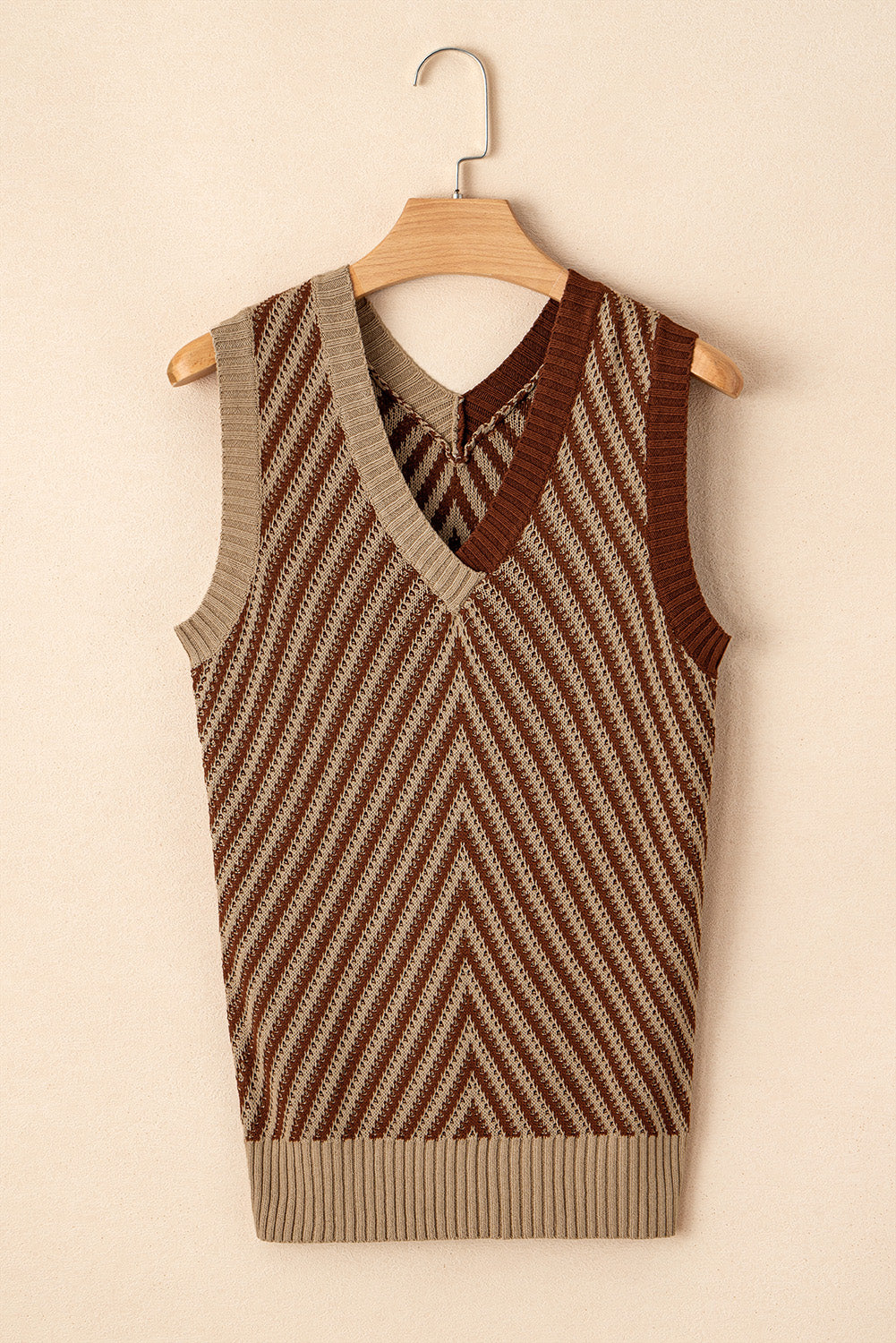 Light Pink Colorblock Chevron V Neck Knitted Vest