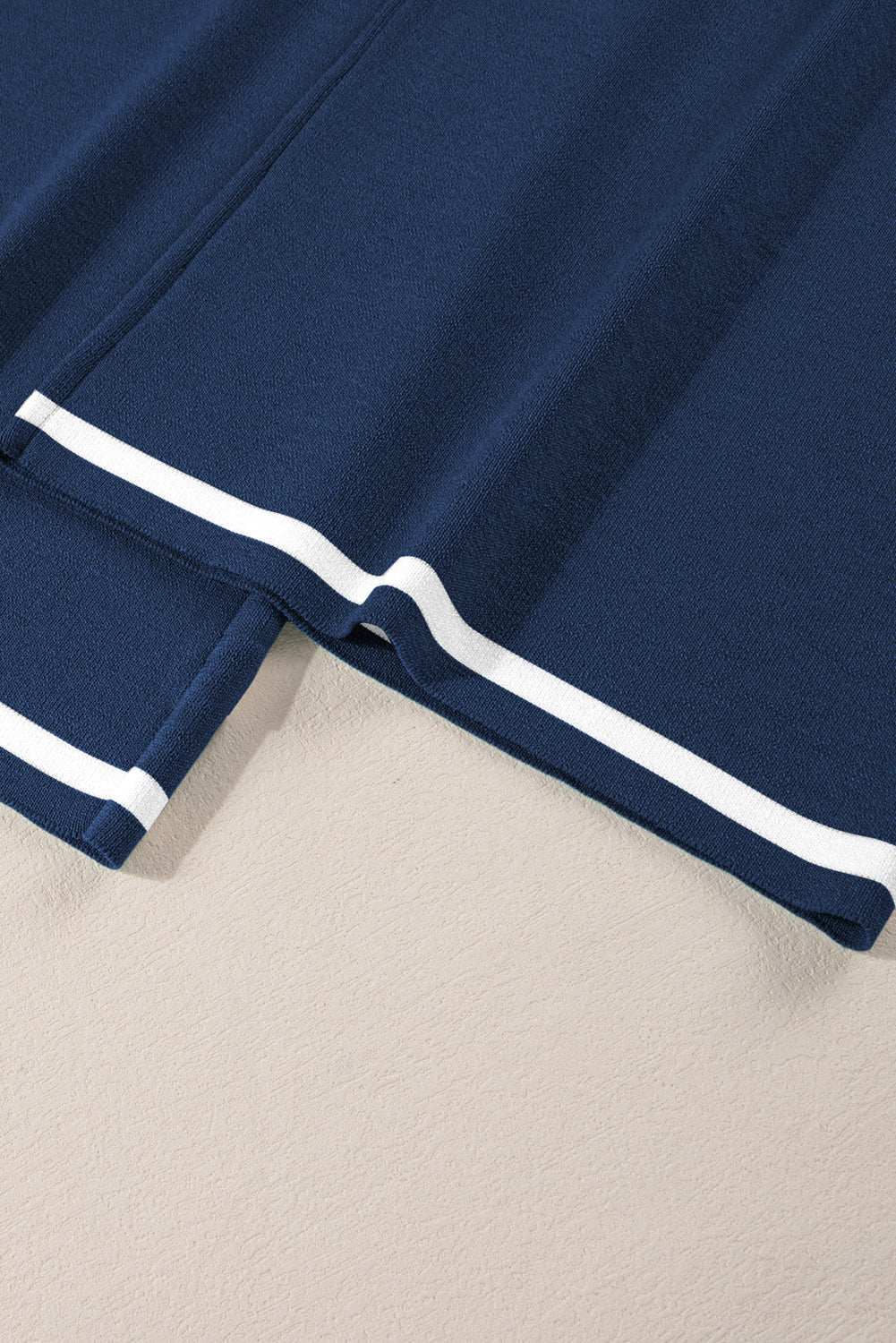 Guacamole Green Loose Contrast Trim Half Sleeve Top and Drawstring Pants Set