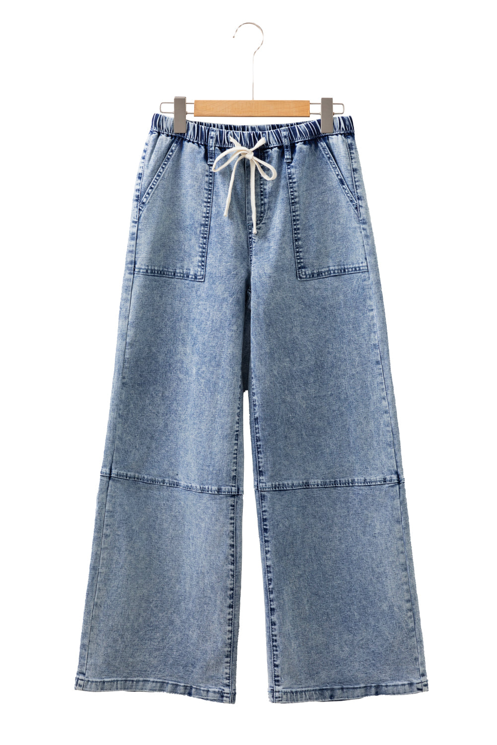 Ashleigh Blue Acid Wash Exposed Seam Drawstring High Waist Jeans