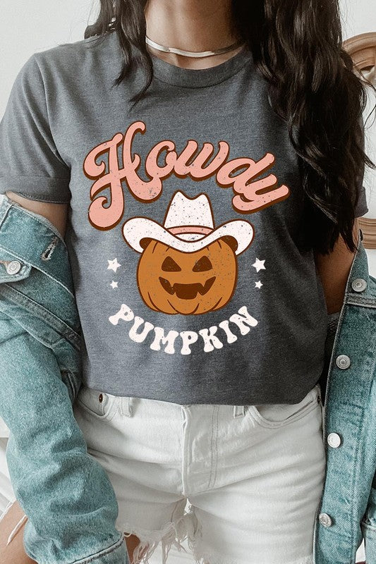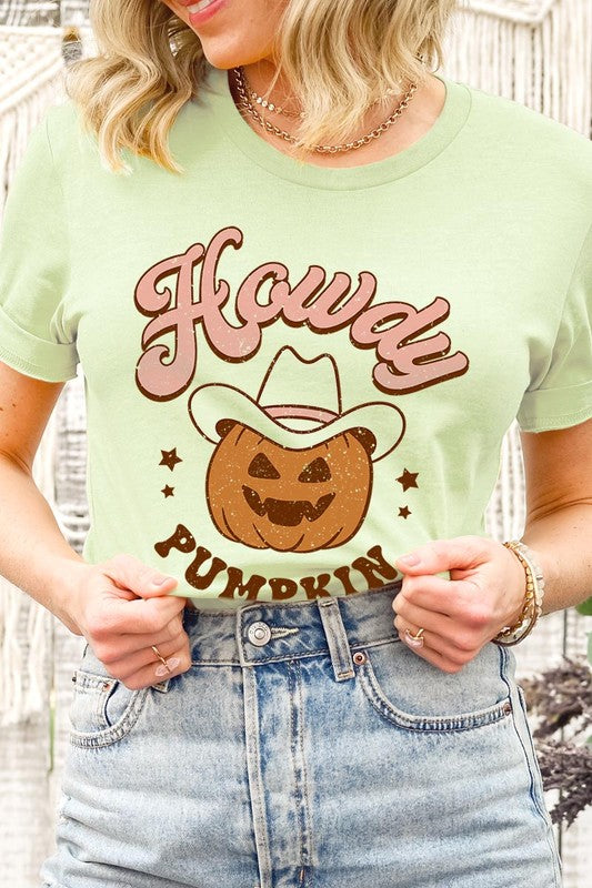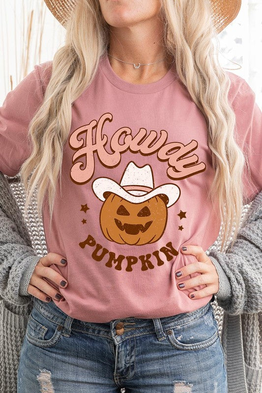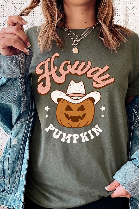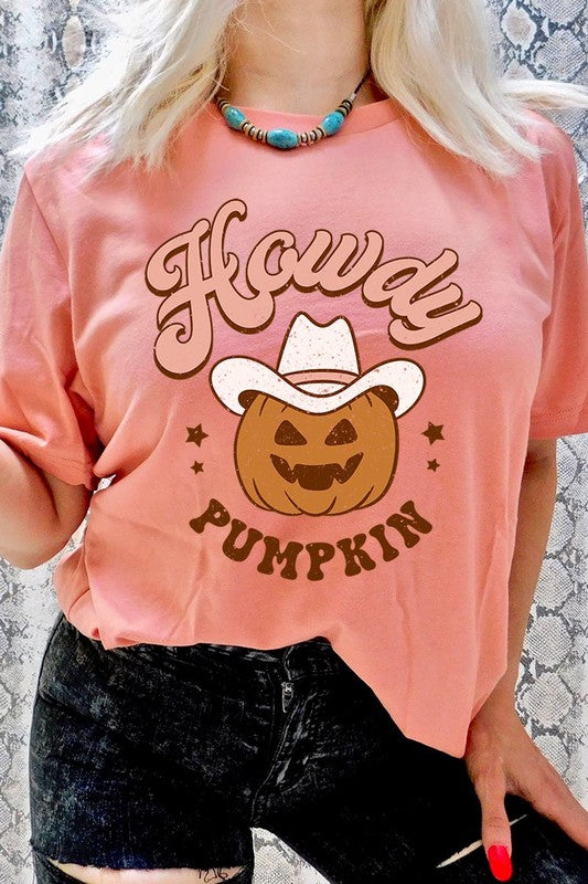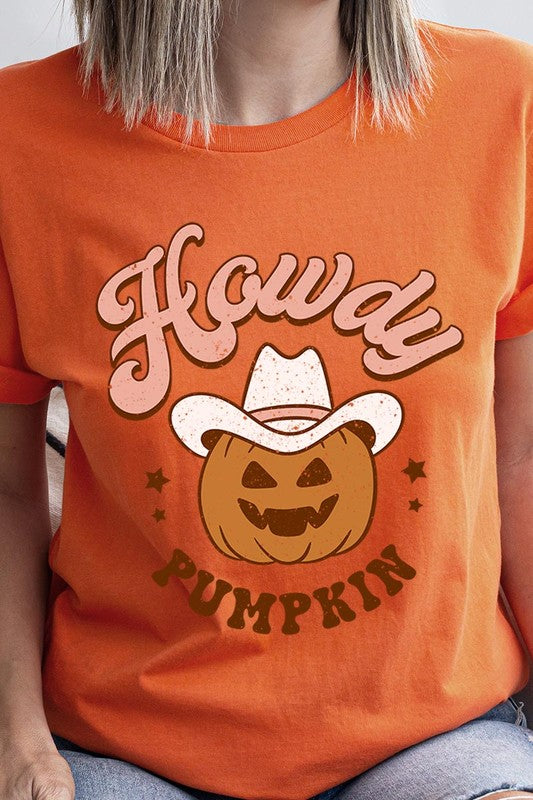 HOWDY PUMPKIN,JACK O LANTERN,COWBOY HAT UNISEX SHORT SLEEVE